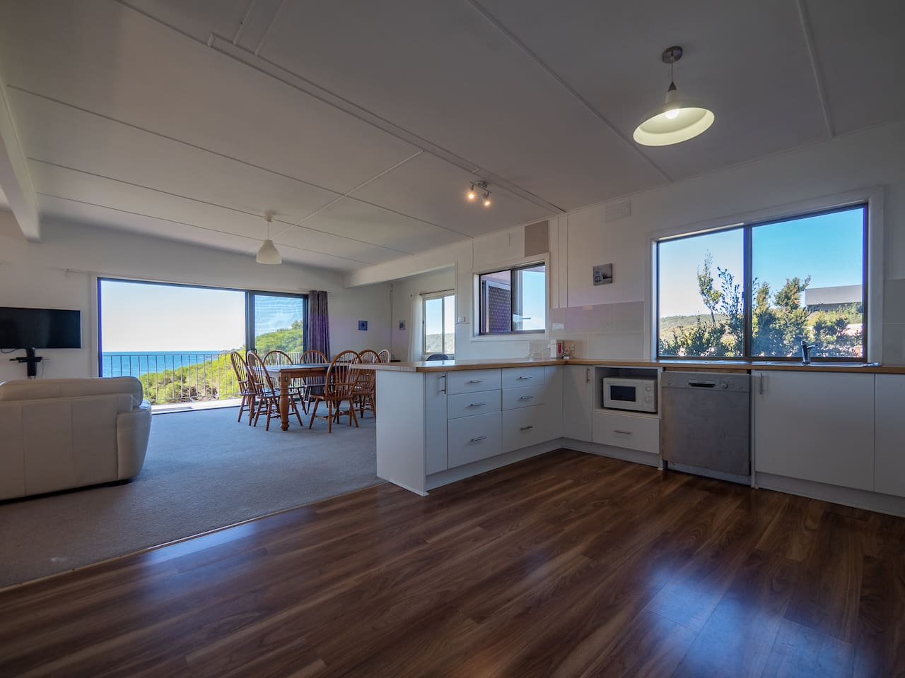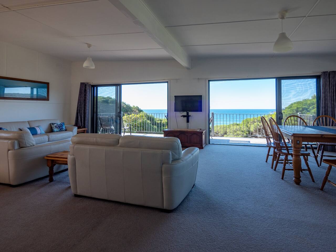 3 Bedroom with 2 bathrooms (1 ensuite) Part of 3 unit property. Parking by side of the road for 1 car. 2nd spot available on request Dogs allowed inside, but not on furniture. Maximum number of dogs is 2, and we need to be notified on booking of number of dogs, to keep the number of dogs on the property to the regulation limit. Linen is supplied for beds and towels for number of people booked. Beach towels and Dog towels needed. Sleep to the sound of the waves.